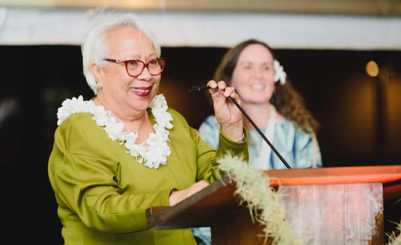 Lahaina homeowner Valerie Ho‘opai was able to rebuild through the laulima approach of HCL’s navigation specialists working together. Aunty Valerie was introduced by Maria Linz, HCL’s Lahaina Homeowner Recovery Program manager.