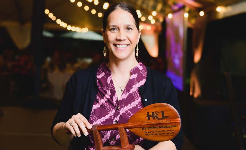Chelsie Evans Enos, CEO of Hawaiian Community Assets, accepted recognition for HCA’s groundbreaking work to create Ua Hale Aʻela, an innovative new rent-with-option-to-purchase program.